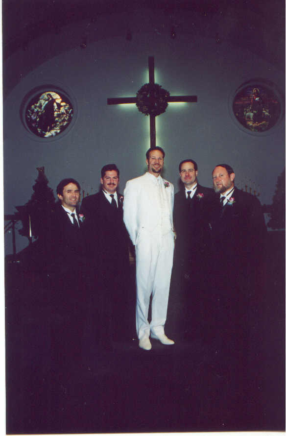 From left to right: Jim, Wendell, me, Brian and Holland. What can I say? These are men who have watched me sink to the lowest depths and rise to the highest heights. Aside from Jesus Christ I owe much of my sanity to these four men of God. I couldn't have asked for a more wonderful group of men to support me in this exceedingly joyful time in my life. It seems fitting to be under the banner of the cross in this picture. Thanks, men, for carrying me along in our pursuit of the glory of the cross.