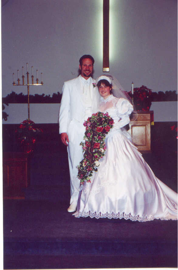 Well, here we are, the newly married couple. Some of you guys are probably thinking, "What's a beautiful girl like that doing with a goofball like him?" Well, that I don't know. But this I do know: I got her and you didn't.